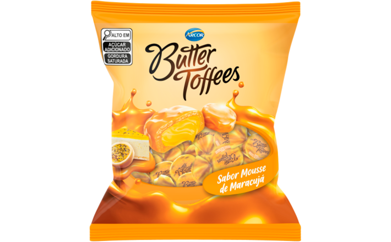 CARAMELOS DE LEITE, RECHEADOS COM CREME SABOR MOUSSE DE MARACUJÁ. CONTÉM AROMATIZANTE SINTÉTICO IDÊNTICO AO NATURAL. INGREDIENTES: XAROPE DE GLUCOSE, AÇÚCAR, LEITE CONDENSADO, ÓLEO VEGETAL DE PALMISTE HIDROGENADO, GORDURA VEGETAL, MANTEIGA, ÓLEO VEGETAL DE SOJA, SORO DE LEITE EM PÓ, PERMEADO DE SORO DE LEITE EM PÓ, LEITE INTEGRAL EM PÓ, SAL, AROMATIZANTE, EMULSIFICANTES: LECITINA DE SOJA, MONO E DIGLICERÍDEOS DE ÁCIDOS GRAXOS E ÉSTERES DE POLIGLICEROL COM ÁCIDO RICINOLÉICO INTERESTERIFICADO, ACIDULANTE ÁCIDO CÍTRICO E CORANTE CURCUMINA (E100/INS 100i). ALÉRGICOS: CONTÉM DERIVADOS DE LEITE, SOJA E PODE CONTER TRIGO, CEVADA, AVEIA, CENTEIO, AMENDOIM, AMÊNDOA, AVELÃS, NOZES, CASTANHA-DE-CAJU, CASTANHA-DO-PARÁ E COCO. CONTÉM LACTOSE. CONTÉM GLÚTEN.