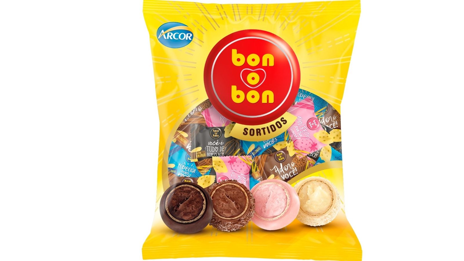 BON O BON BRIGADEIRO – PT – WAFER COM RECHEIO SABOR CHOCOLATE E COBERTURA SABOR CHOCOLATE COM GRANULADO – INGREDIENTES: AÇÚCAR, GORDURA VEGETAL, GORDURA VEGETAL INTERESTERIFICADA, LEITE INTEGRAL EM PÓ, CACAU EM PÓ, FARINHA DE TRIGO ENRIQUECIDA COM FERRO E ÁCIDO FÓLICO, MASSA DE CACAU, SORO DE LEITE EM PÓ, PERMEADO DE SORO DE LEITE EM PÓ, CONFEITO SABOR CHOCOLATE (AÇÚCAR, FÉCULA DE MANDIOCA, GLICOSE EM PÓ, CACAU EM PÓ, ÓLEO VEGETAL DE PALMISTE, SAL, UMECTANTE GLICEROL, EMULSIFICANTE LECITINA DE SOJA, ANTIUMECTANTE SILICATO DE MAGNÉSIO, ESPESSANTE GOMA ARÁBICA E AROMATIZANTE), AMENDOIM EM PASTA, FÉCULA DE MANDIOCA, MANTEIGA DE CACAU, CEREAL CROCANTE (ARROZ, AÇÚCAR, MALTE, CACAU EM PÓ, SAL E ANTIUMECTANTE CARBONATO DE CÁLCIO), AMENDOIM, SAL, ÓLEO VEGETAL DE SOJA, LEITE DE COCO, COCO RALADO, EMULSIFICANTES: LECITINA DE SOJA, ÉSTERES DE POLIGLICEROL COM ÁCIDO RICINOLÉICO INTERESTERIFICADO E MONO E DIGLICERÍDEOS DE ÁCIDOS GRAXOS, AROMATIZANTES, FERMENTO QUÍMICO BICARBONATO DE SÓDIO, CORANTE CARMIM (E120/INS 120) E ACIDULANTE ÁCIDO CÍTRICO. ALÉRGICOS: CONTÉM AMENDOIM E DERIVADOS, COCO E DERIVADOS, DERIVADOS DE TRIGO, SOJA, LEITE E CEVADA E PODE CONTER AVEIA, CENTEIO, AMÊNDOA, AVELÃS, NOZES, CASTANHA-DE-CAJU, CASTANHA-DO-PARÁ E LÁTEX NATURAL. CONTÉM LACTOSE.