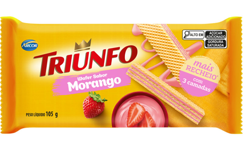 WAFER RECHEADO SABOR MORANGO – INGREDIENTES: AÇÚCAR, FARINHA DE TRIGO ENRIQUECIDA COM FERRO E ÁCIDO FÓLICO, GORDURA VEGETAL, ÓLEO VEGETAL DE SOJA, SAL, EMULSIFICANTE: LECITINA DE SOJA, FERMENTO QUÍMICO BICARBONATO DE SÓDIO, AROMATIZANTE, ACIDULANTE ÁCIDO CÍTRICO E CORANTE CARMIM (INS 120). ALÉRGICOS: CONTÉM DERIVADOS DE TRIGO, SOJA E PODE CONTER LEITE, CEVADA, AVEIA, CENTEIO, AMENDOIM, AMÊNDOA, AVELÃS, NOZES, CASTANHA-DE-CAJU, CASTANHA-DO-PARÁ E COCO. CONTÉM GLÚTEN. I
